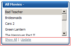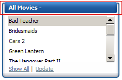 BodyStyle | Applies to the body section of the ListBox. This property usually works together with HeaderStyle and FooterStyle to offer a unique appearance of the control. For example, the VS_2008 skin (shown left) uses background-image CSS property in all these three properties to create the blue frame around the list items. It also uses padding CSS properties to reserve spaces around the list items (without padding there would not be any space between the vertical scrollbar and the blue right border). |